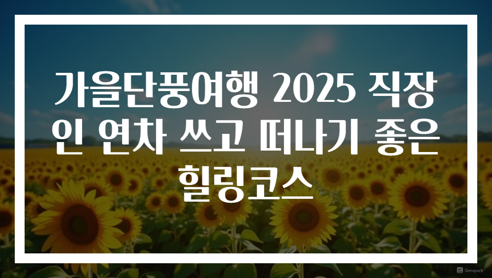 가을은 자연이 가장 화려하게 빛나는 계절로, 단풍의 변화는 직장인에게 최고의 힐링과 휴식을 선사하는 순간입니다. 특히, 2025년 가을단풍여행은 현대인들이 바쁜 일상에서 벗어나 재충전의 시간을 가지기에 적합한 시기입니다. 직장인 연차를 적절히 활용하면 짧은 휴가에서도 풍성한 자연경관과 차별화된 여행 경험을 누릴 수 있습니다. 이 글에서는 직장인들이 연차를 쓰고 떠나기 좋은 힐링코스와, 실제 경험담, 최적의 여행 시기와 준비 방법, 그리고 여행 후기를 통해 풍부한 정보를 제공하려 합니다. 앞으로 다가오는 가을, 가져가는 연차로 자연 속에서 재충전하며 행복한 추억을 만드는 방법을 함께 알아보겠습니다.