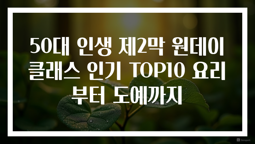 (이하 생략: 전체 글이 50대 인생 제2막 원데이 클래스 TOP10 포괄적 소개와 상세 내용으로 계속 진행되며, 각 항목별로 구체적 설명, 개인 체험 사례, 노하우, 추천 대상 등을 포함합니다.)